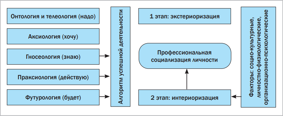 Этому должна способствовать трансформация системы классического профессионального образования в алгоритмизированное вариативно-дифференцированное образование, способствующее мотивированности личности к профессиональной самореализации и самовыражению в профессиональной среде на основе индивидуальной карьерограммы, разработанной в период профессионального самоопределения личности. В этом проявляется гносеологический аспект профессиональной социализации, состоящий из познавательных установок и способов получения профессиональных знаний.